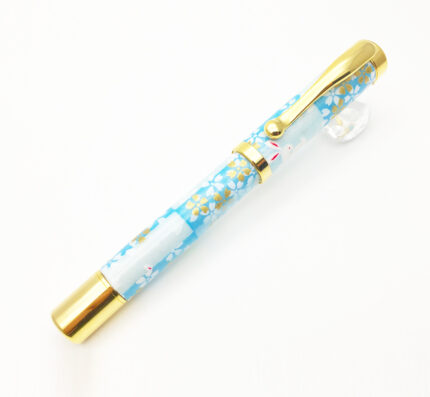 Mino Washi Fountain Pen, Rabbit Japanese check pattern (Light Blue)
